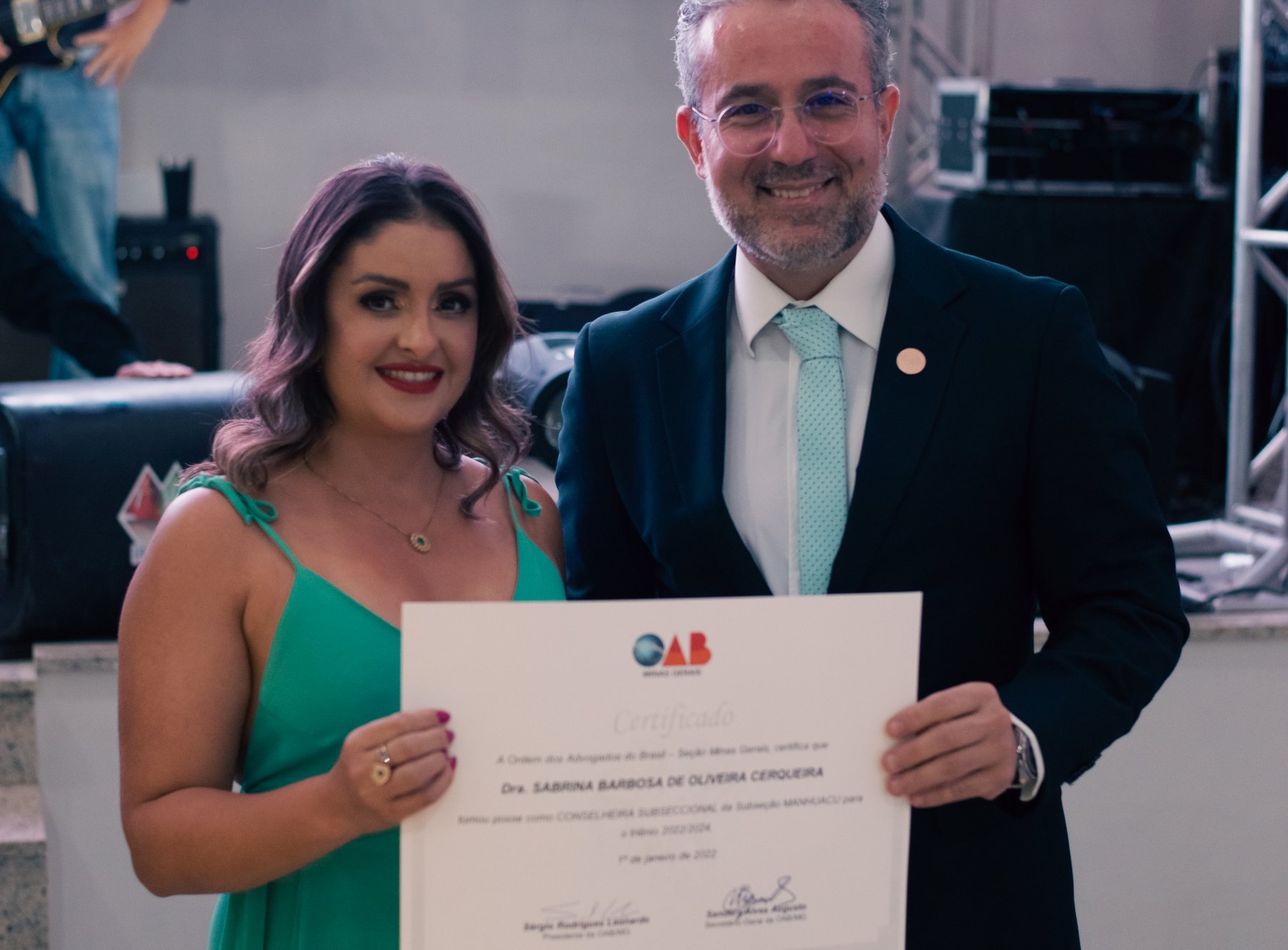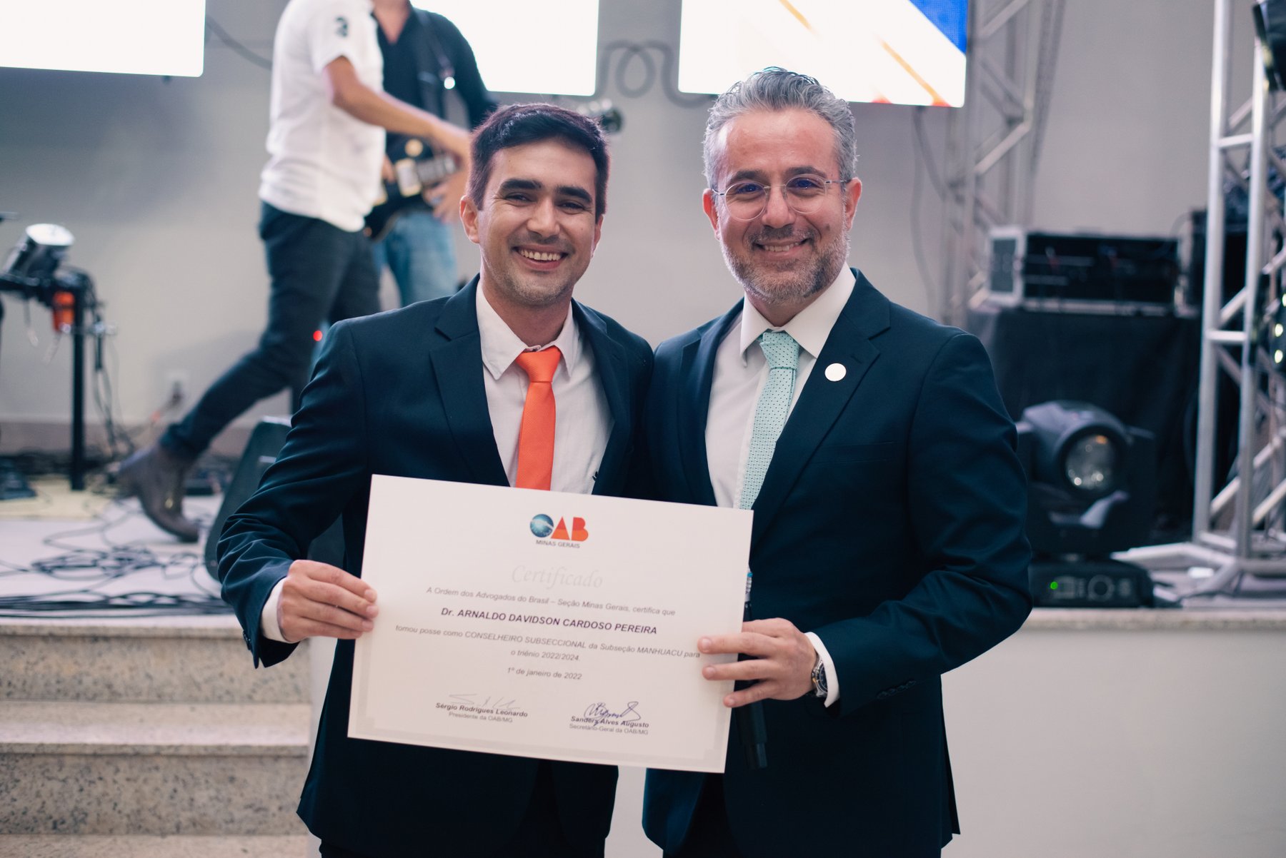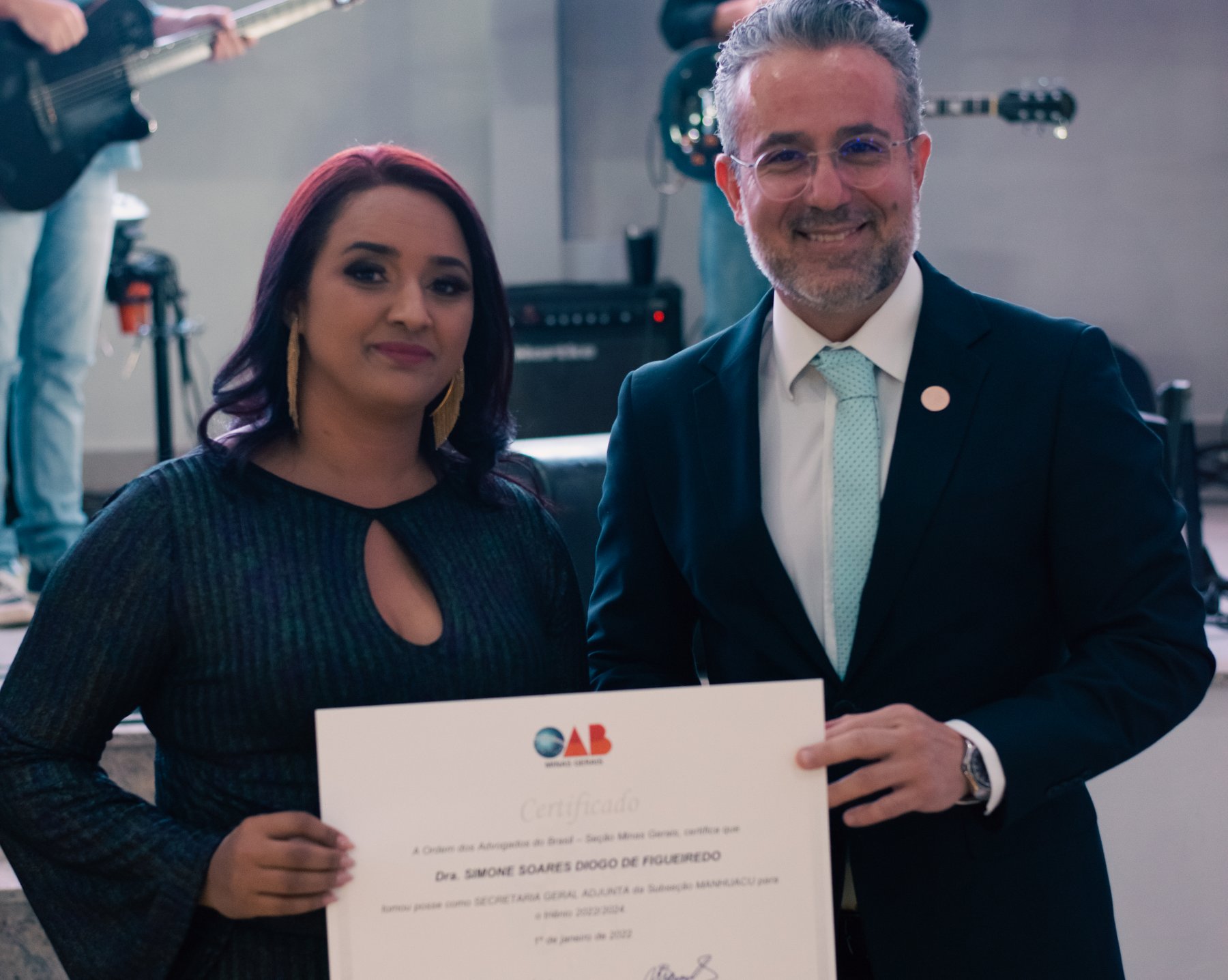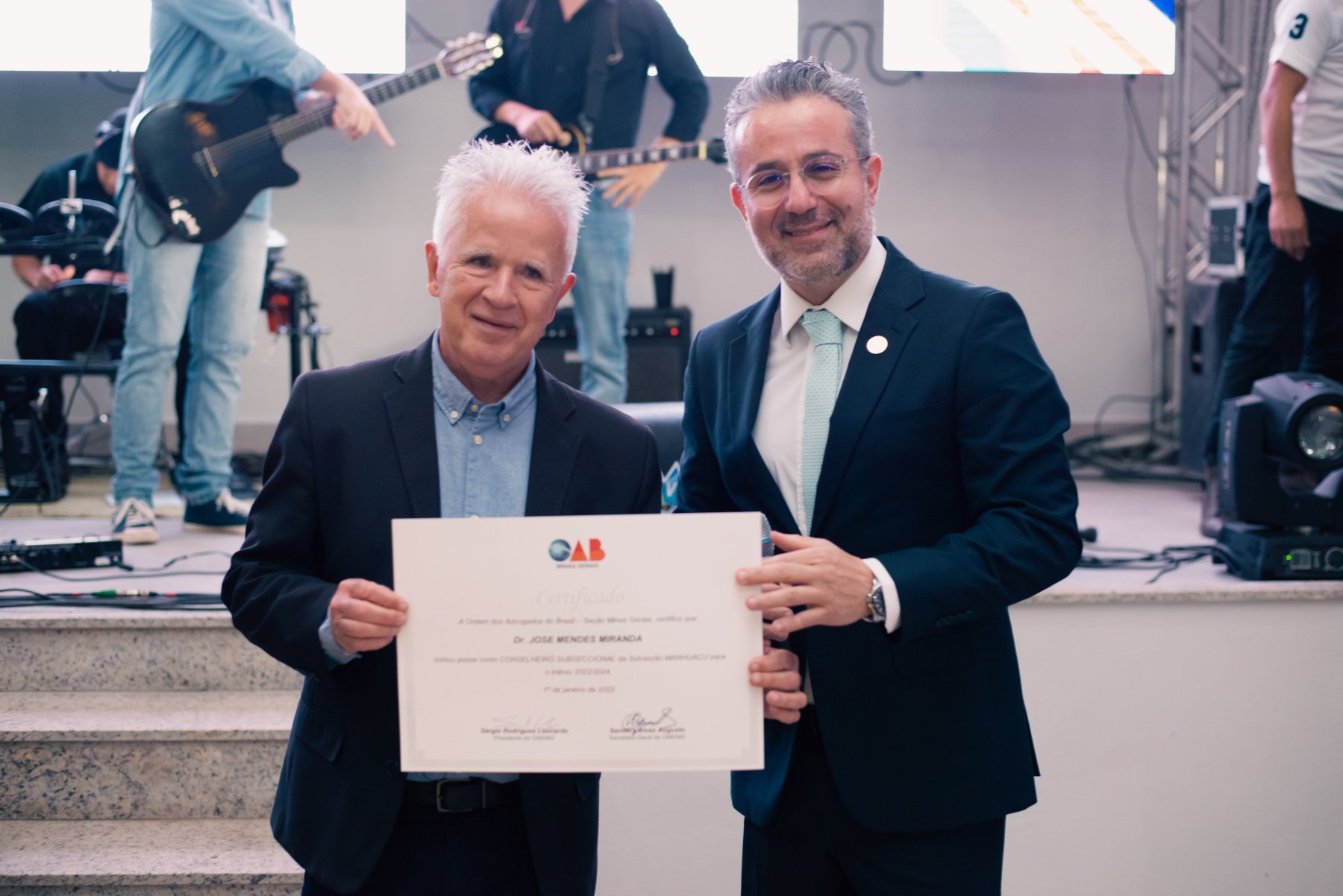 O Diretor Institucional da Seccional Mineira da OAB, Dr. Rômulo Brasil, participou do evento em nome da advocacia mineira e entregou os certificados dos membros da diretoria e conselho da subseção de Manhuaçu.