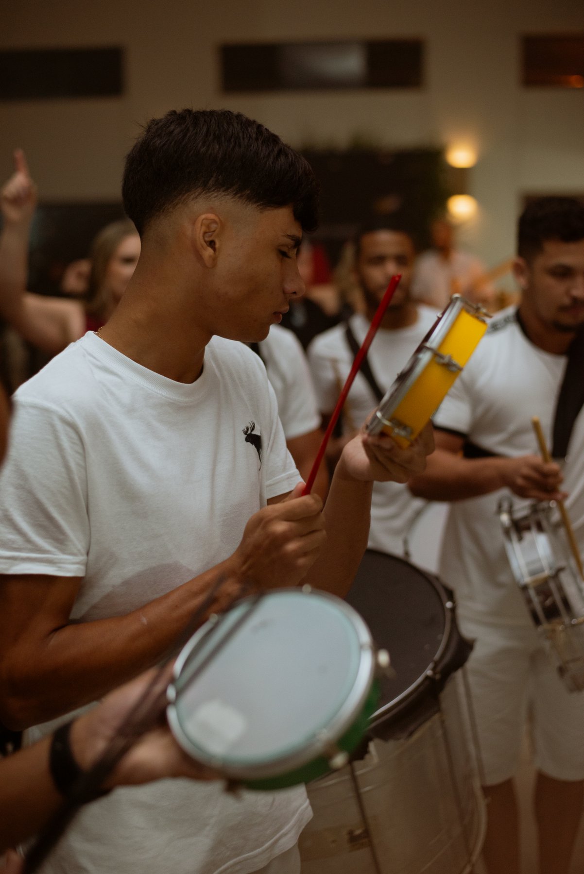 No início da festa, a animação ficou por conta da banda New Place, que mesclou vários tipos de músicas. A Bateria da Escola de Samba Voz do Morro também embalou os convidados na segunda parte da noite.
